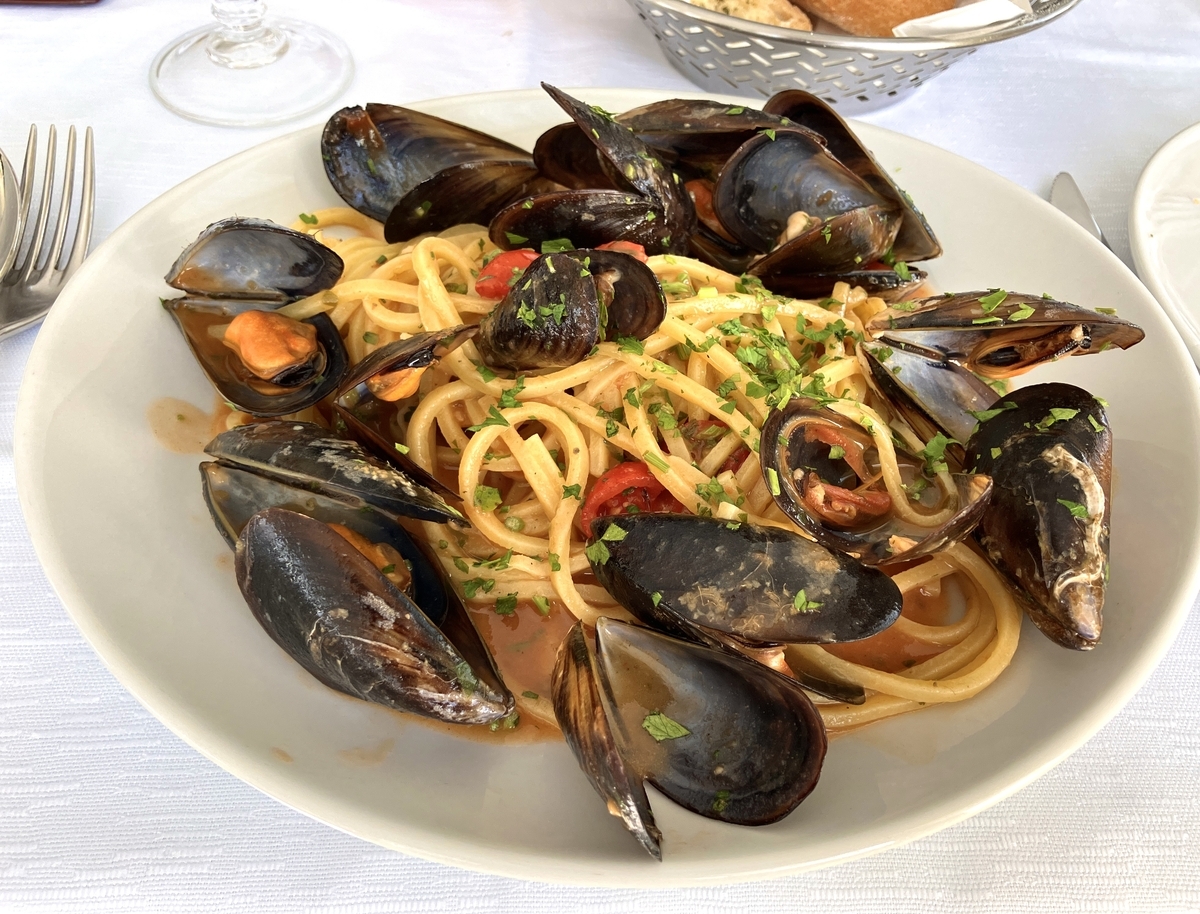 私のシーフードパスタが運ばれてきた時、ムール貝とパセリのいい香りがふわっと漂って、食欲をそそった。